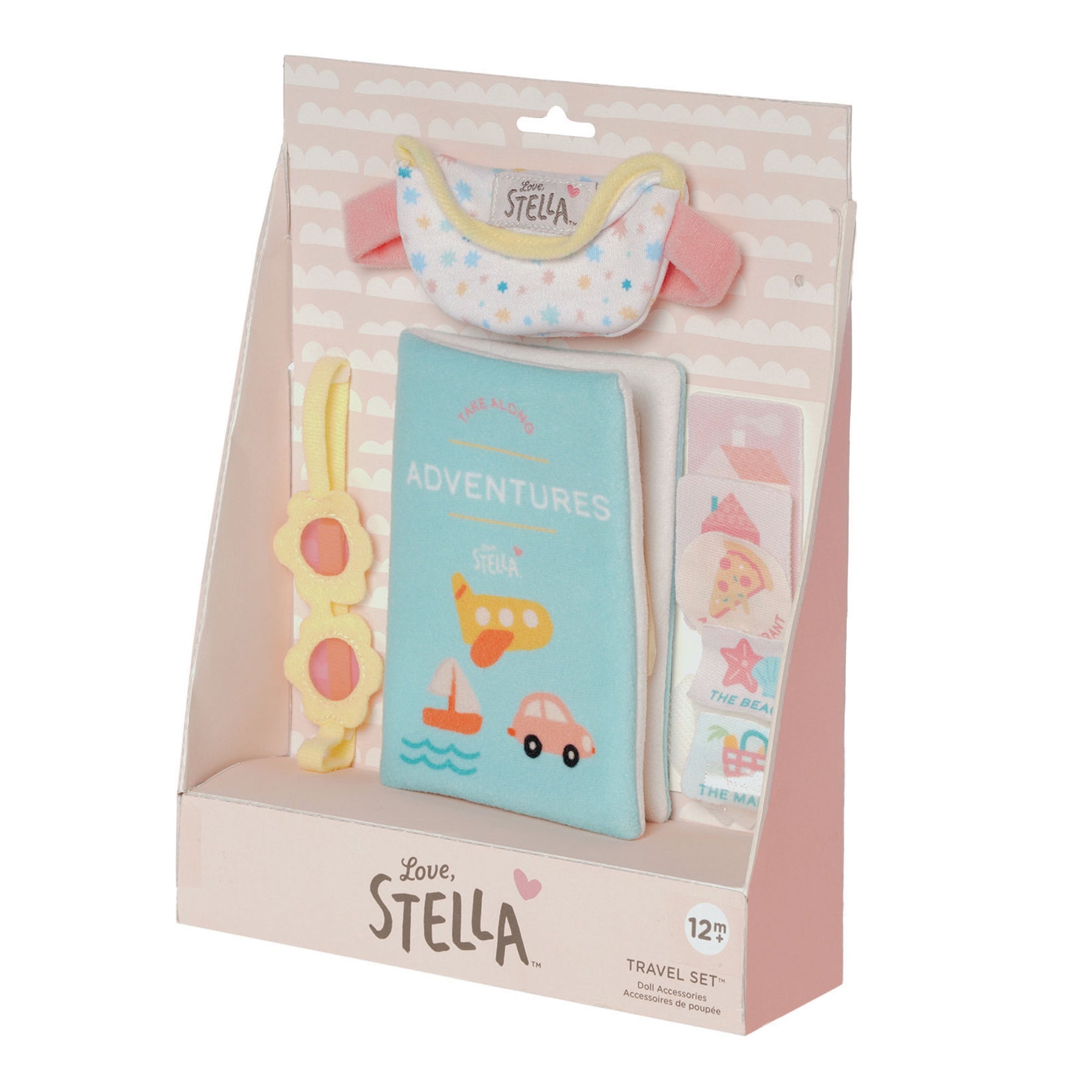 Your passport to playtime adventures! Set includes doll-sized sunglasses and fanny pack. Also includes a child-size adventure passport with six hook and loop stamps to track excursions like going to the beach or grandma's house. Doll sold separately.