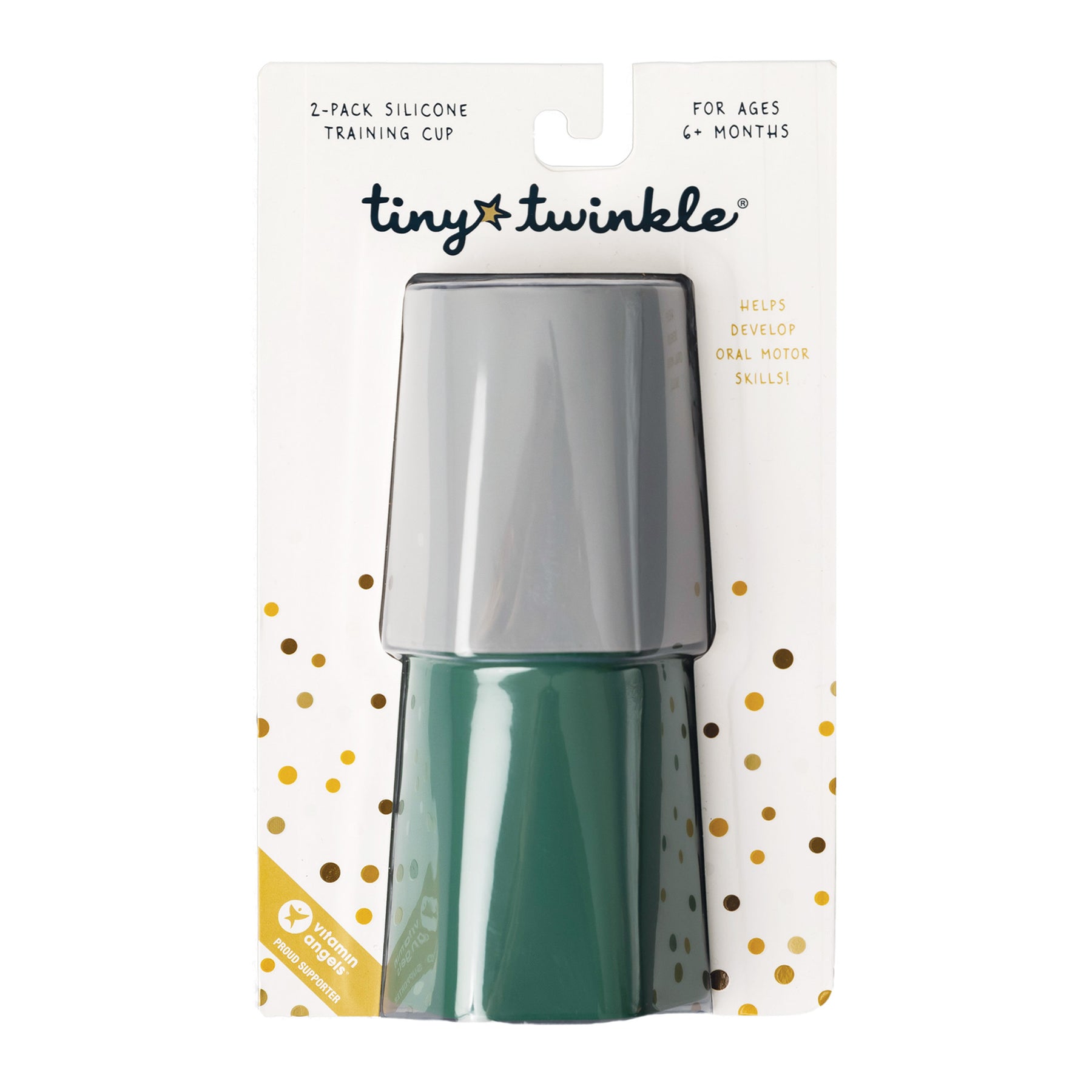Les tasses d'apprentissage Tiny Twinkle en silicone sont idéales pour les bébés qui passent du biberon au biberon. Leur forme ouverte favorise le développement bucco-dentaire. Fabriquées en 100 % silicone, elles sont douces et délicates pour les gencives de bébé tout en étant faciles à nettoyer ! À partir de 6 mois.
