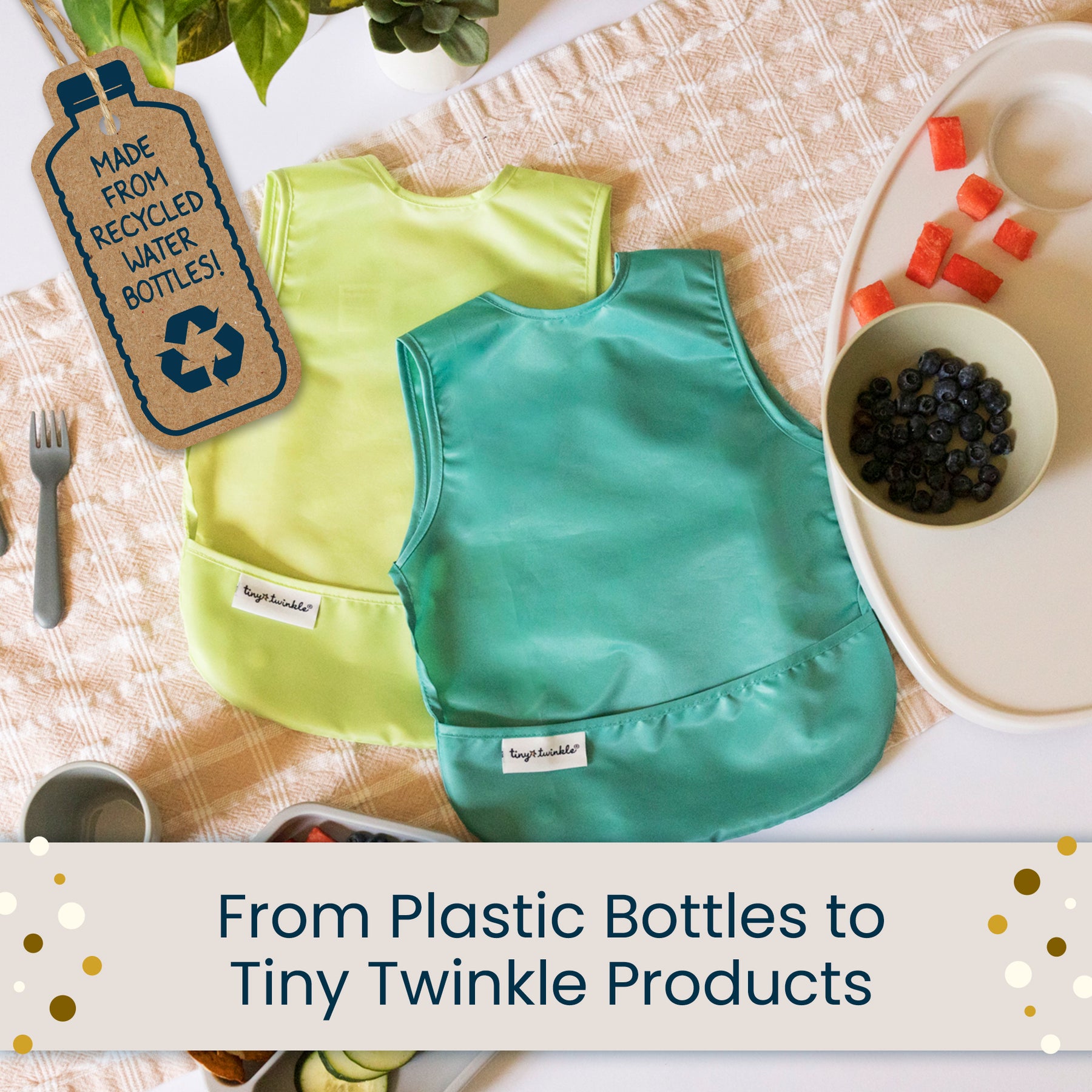 Les bavoirs tabliers anti-salissures Tiny Twinkle sont doux, légers et imperméables. Ils sont parfaits pour protéger bébé des dégâts et assurer son confort pendant les repas !